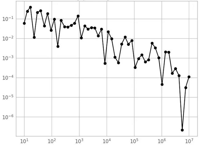 Este gráfico mostra um exemplo da relação entre o erro na estimativa de pi e o tamanho da amostra. O eixo x representa o tamanho da amostra e o eixo y representa o erro absoluto na estimativa de pi. O erro diminui à medida que o tamanho da amostra aumenta, mas ainda existe alguma aleatoriedade nas estimativas, mesmo para tamanhos de amostra grandes.